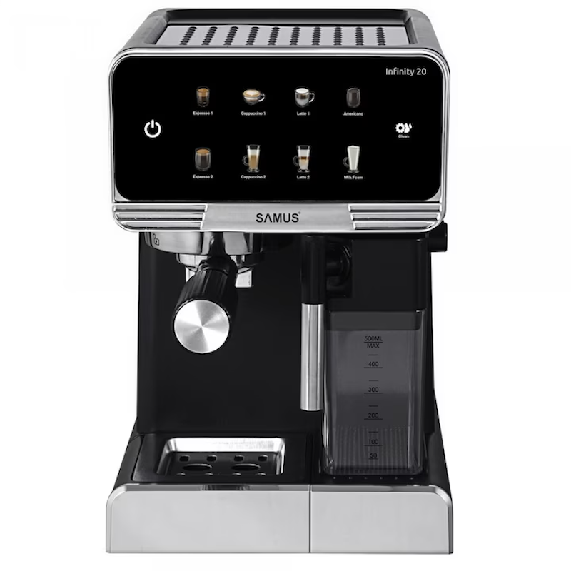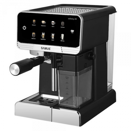 Espressor manual Samus Infinity 20, 1350 W, 7 optiuni de cafea, Rezervor lapte, Negru-Argintiu
