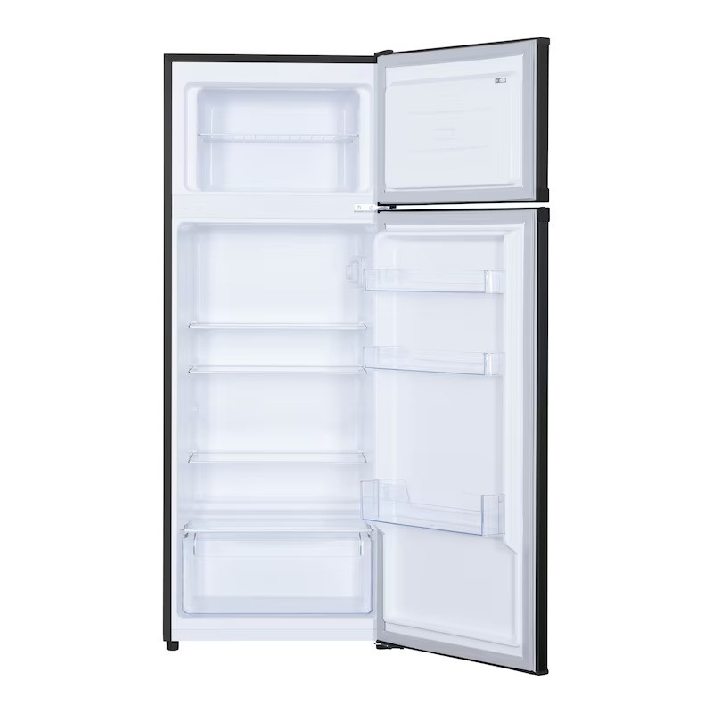 Frigider cu doua usi Heinner HF-H2206BKE++, 206 l, Clasa E, lumina LED, 3 rafturi de sticla, H 143 cm, Negru