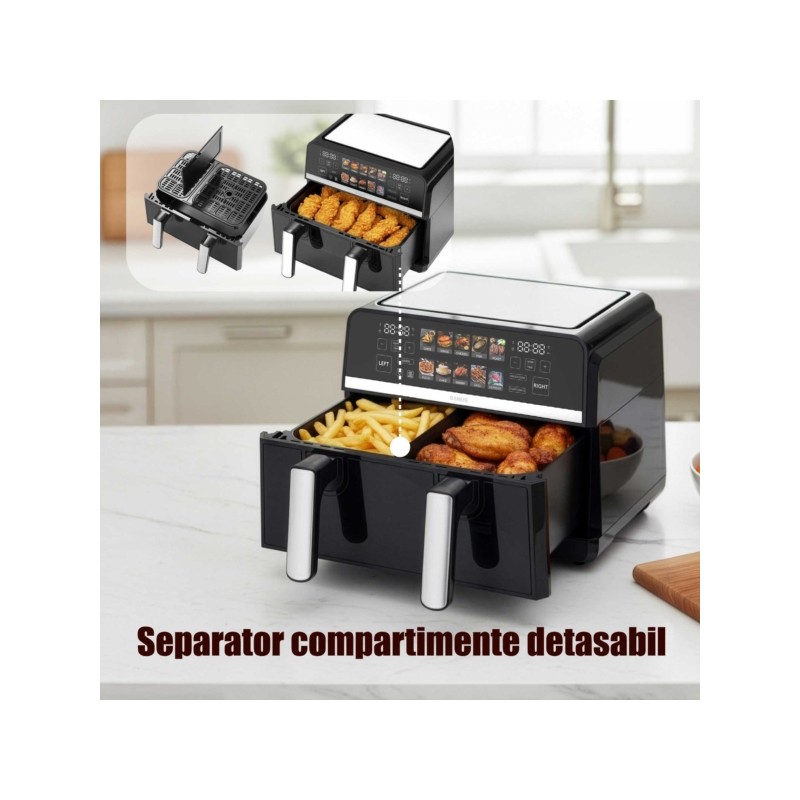 Friteuza cu aer cald Samus AF9BIG-S2500DW, 2500 W, 9 litri, Separator compartiment detasabil