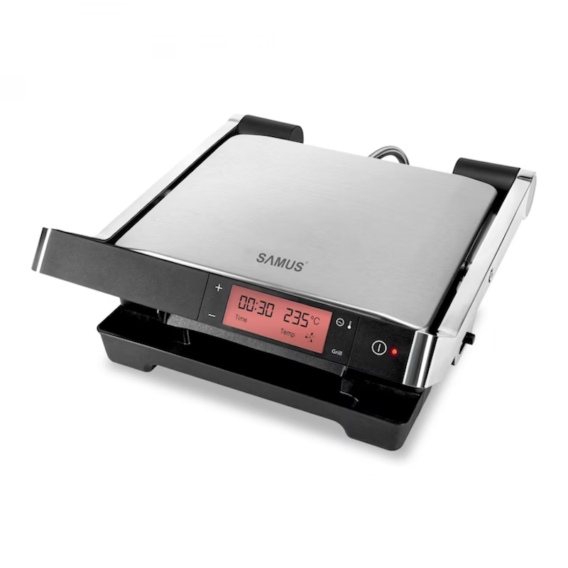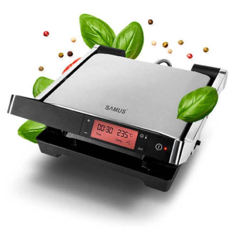 Gratar electric Samus GTS-2030ACX, 2000 W, Ecran Digital, Timer, Avertizare sonora, Functie Dezghetare, Inox/ Negru