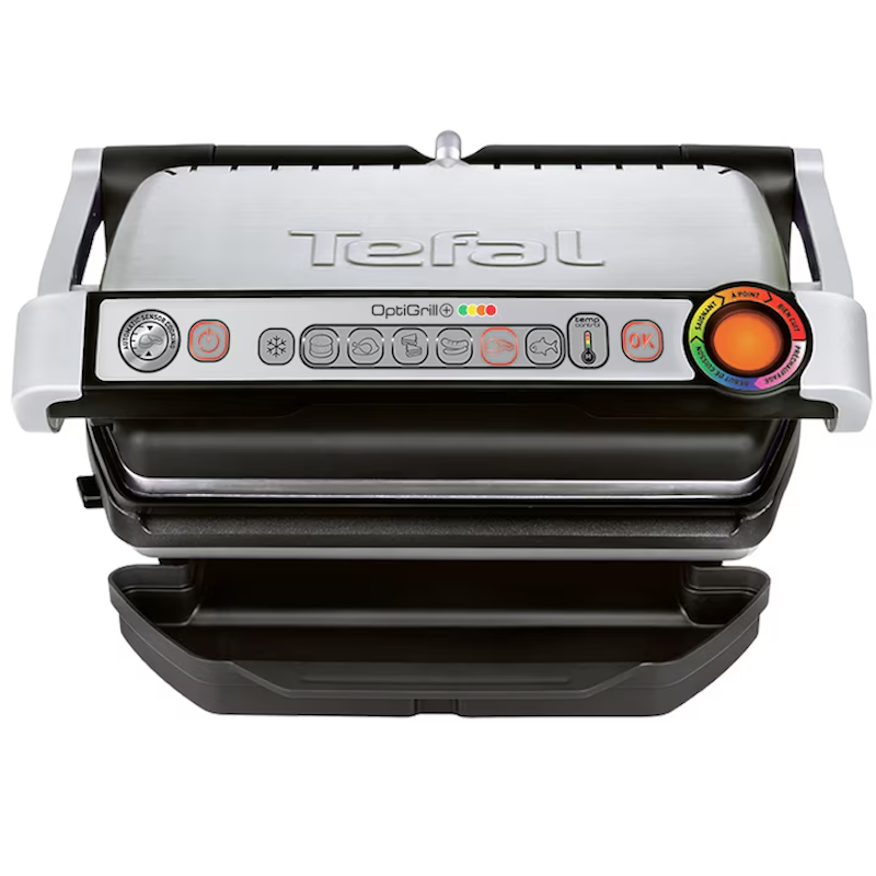 Gratar electric Tefal OptiGrill+ GC712D34 , 2000 W, 6 programe automate, Inox/Negru