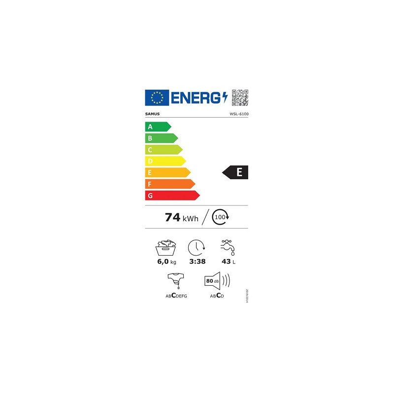 Masina de spalat rufe Samus WSL-6100, 6 kg, 1000 Rotatii, Clasa energetica E, 23 Programe