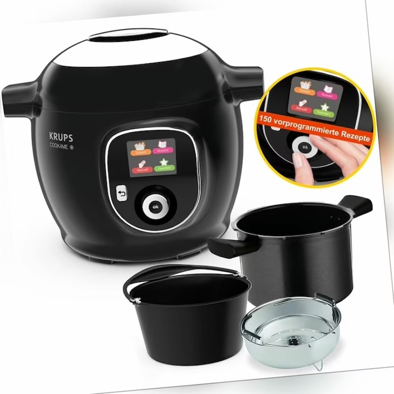 Noul Cook4me+ cu 150 de retete preprogramate, meniu de ingrediente cu 48 de ingrediente, o multime de accesorii, functie automata de incalzire, afisaj color, 6 dispozitive de protectie pentru siguranta maxima 150 de retete preprogramate, pe care le puteti pregati in cel mai scurt timp cu Cook4Me+. De la legume gatite la abur cu delicatete, la carne suculenta cu sos, pana la deserturi delicioase intr-un timp scurt Functie de gatire rapida: Pregatiti-va mesele in cel mai scurt timp posibil. Urmariti procesul de gatire pe ecran. Proces de gatire complet automat si pornire intarziata a gatirii pentru flexibilitate in timp Simplu si practic: capacul poate fi deschis si blocat intr-un singur pas. Recipient de gatit detasabil cu invelis antiaderent. Recipiente de gatit si insertii pentru gatit la abur, lavabile in masina de spalat vase Siguranta maxima: Sistem usor de deschidere si inchidere, precum si 6 dispozitive de protectie pentru o functionare sigura. Panou de control LCD color pentru o manipulare usoara. O multime de accesorii incluse.