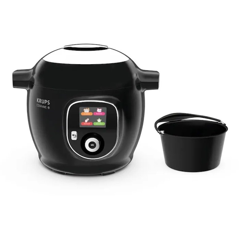 Fie ca este vorba de aperitive, feluri principale sau deserturi - asistentul inteligent de gatit COOK4ME+ Gourmet va ajuta in fiecare zi sa gatiti toate preparatele preferate cu instructiuni intuitive pas cu pas. Puteti alege din meniul de retete (150 de retete pas cu pas preinstalate), meniul de ingrediente (carne, peste, legume, fructe, orez si cereale) si modul manual (optiuni personalizate de preparare, cum ar fi gatirea sub presiune pentru preparate rapide si proaspete, gatirea usoara, inabusirea, prajirea, reincalzirea si mentinerea la cald). Cu functia „gatire sub presiune”, multicookerul COOK4ME+ Gourmet permite o preparare deosebit de rapida. Datorita celor sase dispozitive de siguranta, pornirii intarziate a gatirii si functiei automate de mentinere la cald, nu trebuie sa va faceti griji cu privire la siguranta. Accesoriile incluse (insertul de aburi din otel inoxidabil si o tava de copt) permit prepararea delicata a unor preparate delicioase si a unei game largi de ingrediente. Cu afisajul LCD color intuitiv, acest multicooker KRUPS este usor dAsistentul de gatit COOK4ME+ Gourmet este multicookerul inteligent unic de la Krups, echipat cu 150 de retete preinstalate si numeroase programe suplimentare de gatit automat. In acelasi timp, nu exista limite pentru preferintele dvs. individuale de gatit. COOK4ME+ Gourmet va permite sa preparati numeroase feluri de mancare delicioase fara efort si rapid, oferindu-va mai mult timp pentru a va bucura de mese.e utilizat si, de asemenea, usor de curatat (cos de gatit detasabil si lavabil in masina de spalat vase, cu invelis antiaderent si accesorii lavabile in masina de spalat vase).