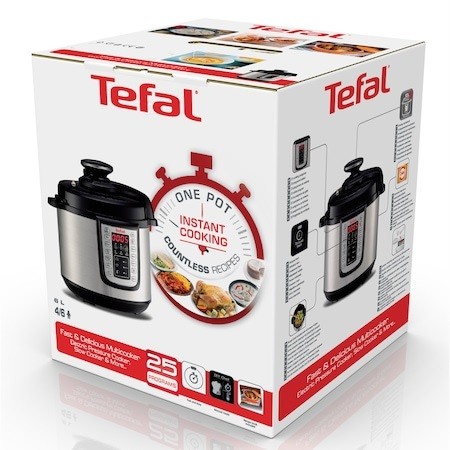 25 de programe Oala sub presiune electrica multifunctionala Tefal One Pot, ce dispune de 25 de programe automate de gatire, a fost proiectata pentru a prepara mese delicioase si pentru a reduce timpul petrecut in bucatarie. Printre aceste programe se numara si: orez, ovaz, mancare pentru bebelusi, gatire sub presiune (mica, medie, mare), coacere, 3 nivele de gatire pentru tocana/supa, 3 nivele de gatire la abur, 7 nivele de rumenire, 3 nivele de prajire, gatire lenta si reincalzire. |