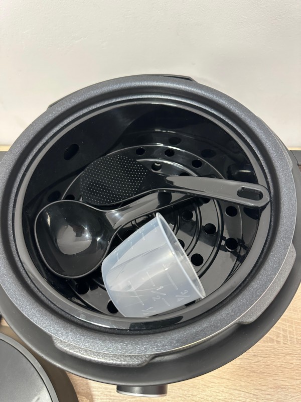 | Continut pachet | 1 x Oala sub presiune Spatula 1 x Recipient pentru masura Lingura pentru supa Cos pentru gatit la abur |