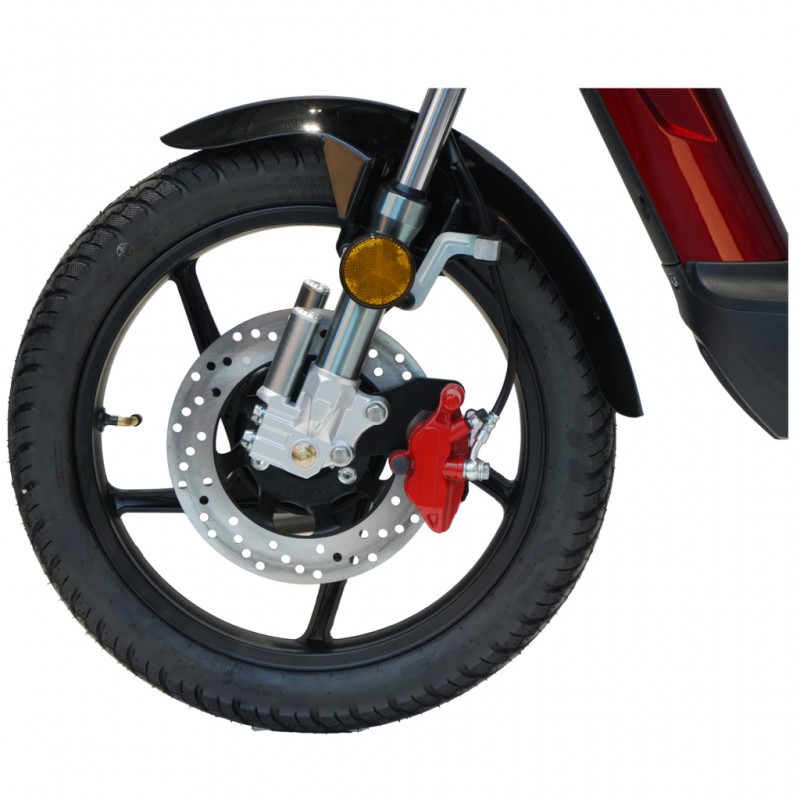 Scuterul electric este echipat cu frane pe disc fata-spate, oferindu-ti stabilitate si control deplin indiferent de situatie. Fie ca te afli in oras sau in trafic aglomerat, te bucuri de o oprire sigura, rapida si precisa.